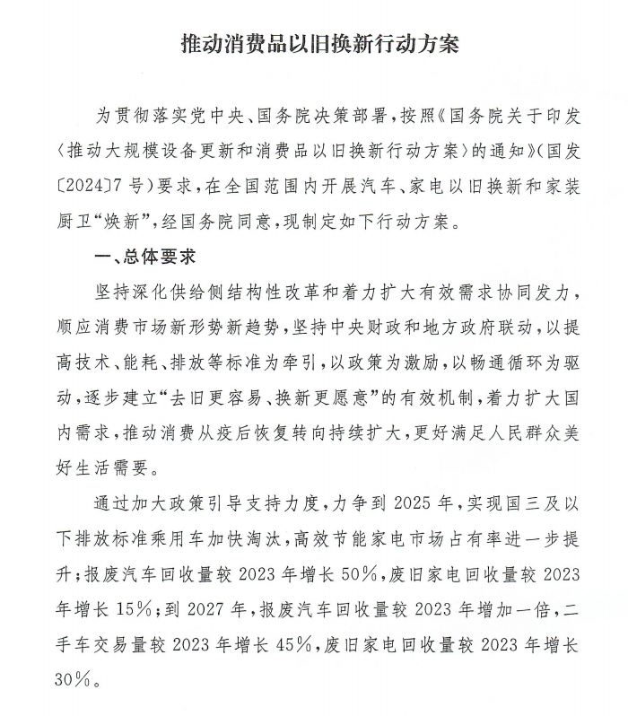 商务部等14部门印发的《推动消费品以旧换新行动方案》4月12日对外发布。