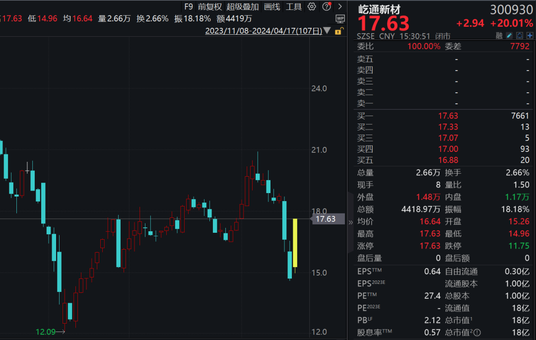 从涨停家数来看,微盘股板块今日有逾200股涨停或涨超10%,位居所有行业板块第一。其中屹通新材、卓锦股份、南华仪器、GQY视讯等10股20%涨停。