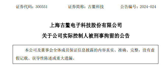 古鳌科技表示,陈崇军目前不担任董事、监事及高级管理人员,其被刑事拘留不会对公司日常经营构成重大影响,亦不影响2023年度报告披露。目前,公司经营情况正常。