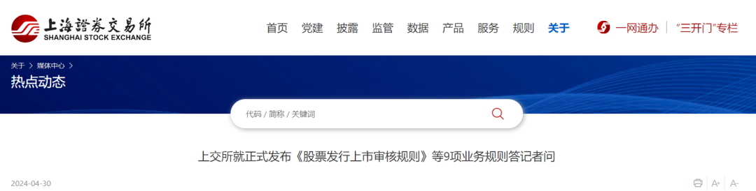 此外,上交所正在制定修订贯彻落实新“国九条”的其他业务规则,将尽快向市场发布。