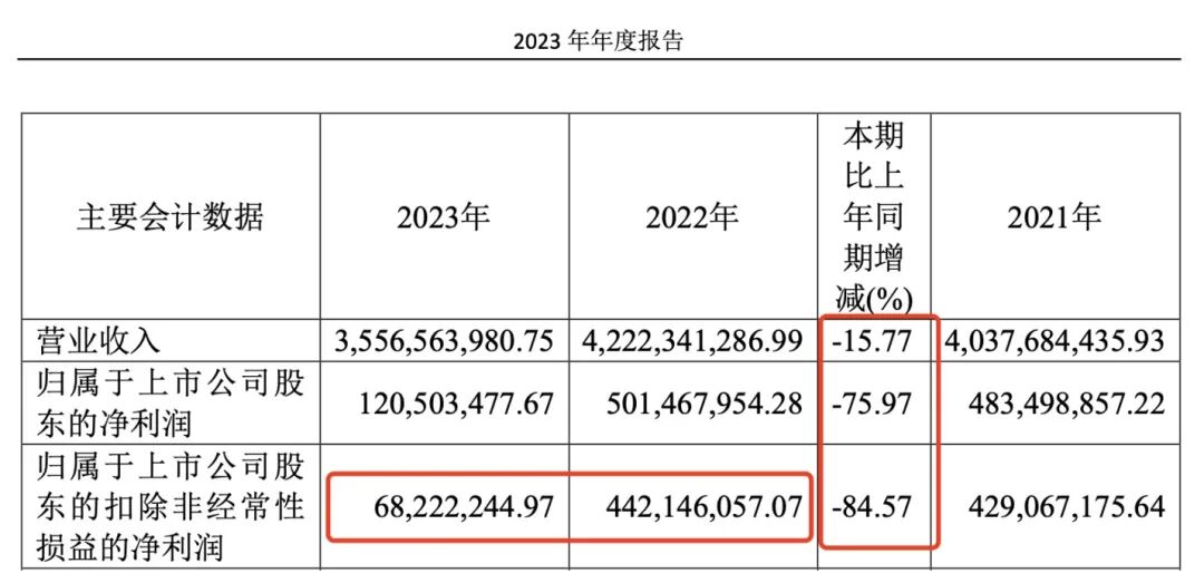 2023年年报显示,极米科技实现营业收入35.57亿元,同比下降15.77%;净利润为1.21亿元,同比下降75.97%;扣非净利润锐减至6822.22万元,同比下降84.57%。