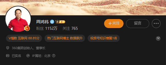 截至目前,周鸿祎拥有微博粉丝1152万。