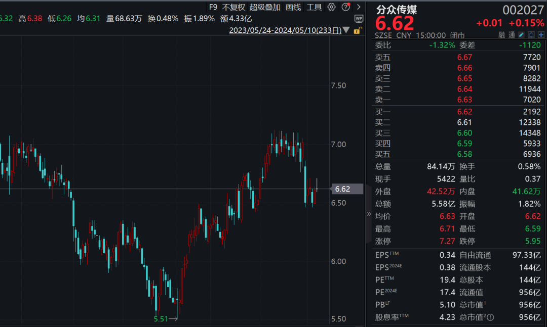 分众传媒成立于2003年,创建电梯媒体广告模式,2005年成为首家在美国纳斯达克上市的中国广告传媒股,并于2007年入选纳斯达克100指数。2015年分众传媒回归A股,市值曾破千亿,成为中国传媒第一股。截至5月10日收盘,分众传媒最新市值956亿元。