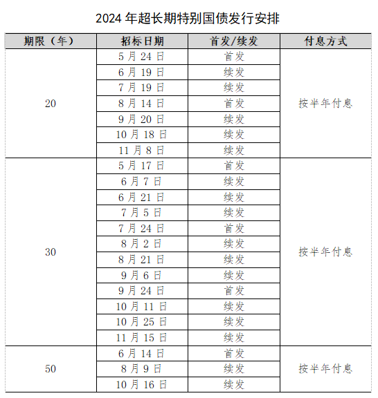 证券时报网讯,财政部公布2024年一般国债、超长期特别国债发行有关安排的通知,其中超长期特别国债涉及期限为20年、30年、50年。