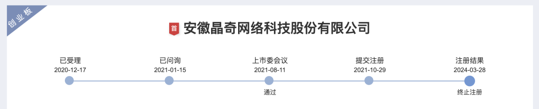 晶奇网络IPO颇为曲折。2020年12月深交所受理晶奇网络创业板上市申请,本次IPO拟募资2.16亿元。2021年8月晶奇网络通过上市委审议,并在同年10月提交注册申请。但事隔两年半后,晶奇网络的IPO之路最终失败。