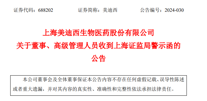 因两年前配偶涉短线交易,美迪西(688202)董事、副总经理蔡金娜近日收到上海证监局下发的《关于对蔡金娜采取出具警示函措施的决定》。5月14日晚间,美迪西发布了上述公告。