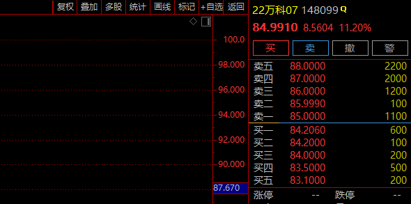 A股市场,万科A强势涨停;港股市场,万科企业盘中涨超16%。万科整体市值重返千亿大关。债券方面,万科境内债连日大涨,截至发稿,22万科07涨超10%。