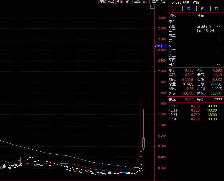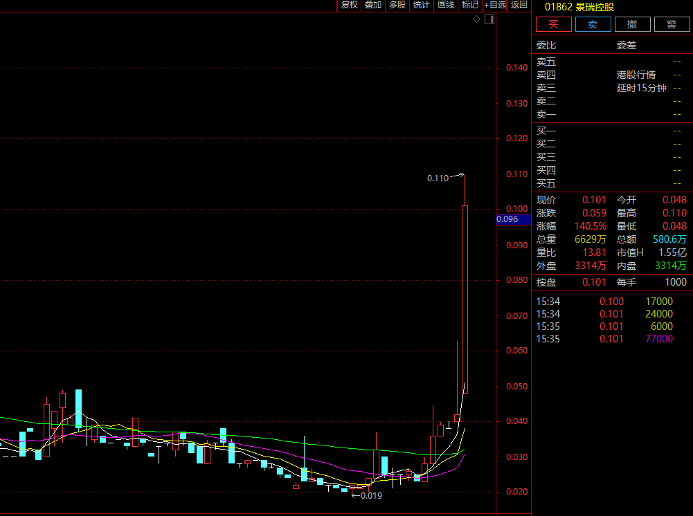 香港市场房地产股延续近几日狂飙的走势,景瑞控股盘中放量暴涨238%,近6个交易日累计大涨530%;粤港湾控股在连续2日剧烈波动后,周五再度巨幅震荡,先是一度飙涨157%,后快速跳水,几近跌至平盘,后又大幅拉升,截至收盘涨47%。