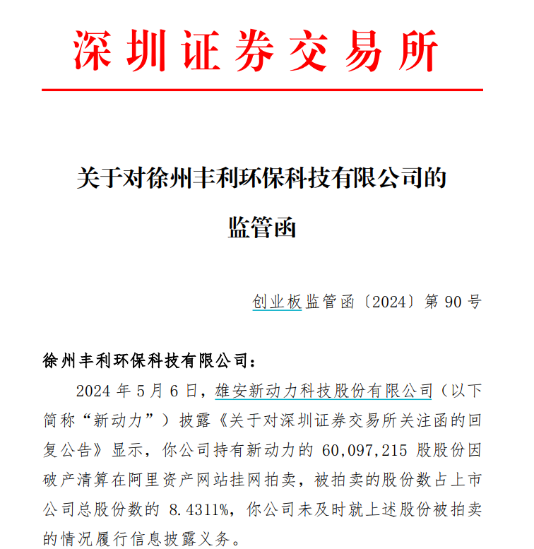因未及时就股份被拍卖情况履行信披义务,5月23日晚间,新动力(300152)公告收到深交所监管函。