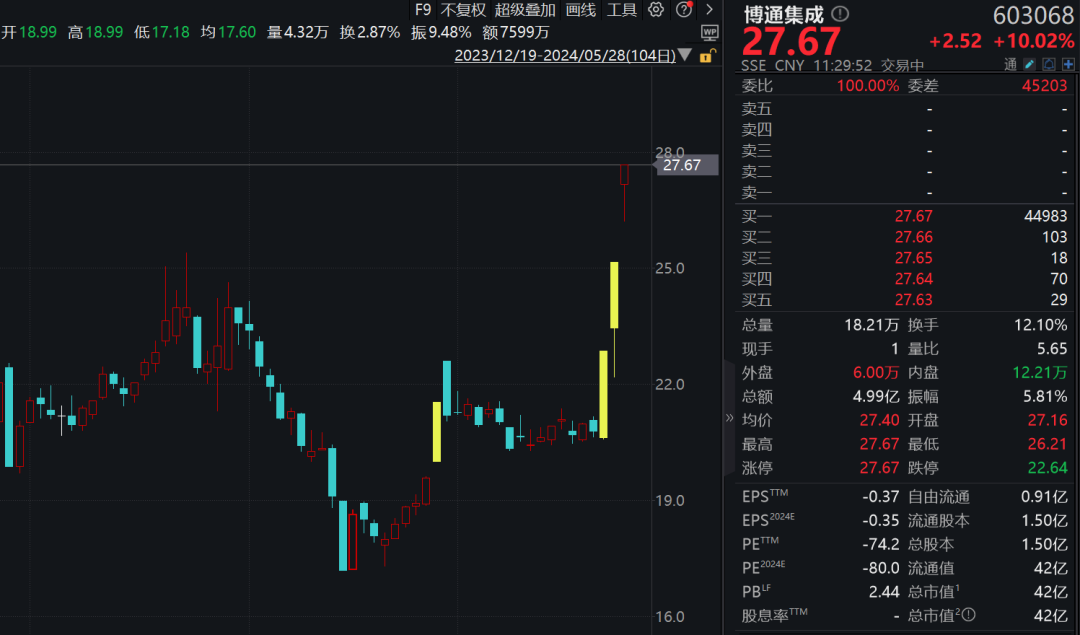 在国家大基金三期成立的利好促进下,芯片股今日继续走强,汽车芯片领域领涨,板块指数一度放量拉升逾3%,半日成交超昨日全天成交。博通集成连续第3日涨停,股价逼近年内新高,富满微、上海贝岭等亦涨停或涨超10%。