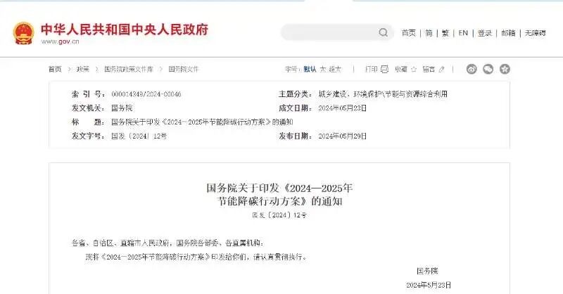 5月29日消息,国务院印发《2024—2025年节能降碳行动方案》(以下简称“《行动方案》”)。