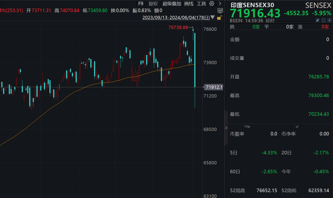 消息面上,印度大选早期计票显示莫迪微弱领先,领先优势不及民调。