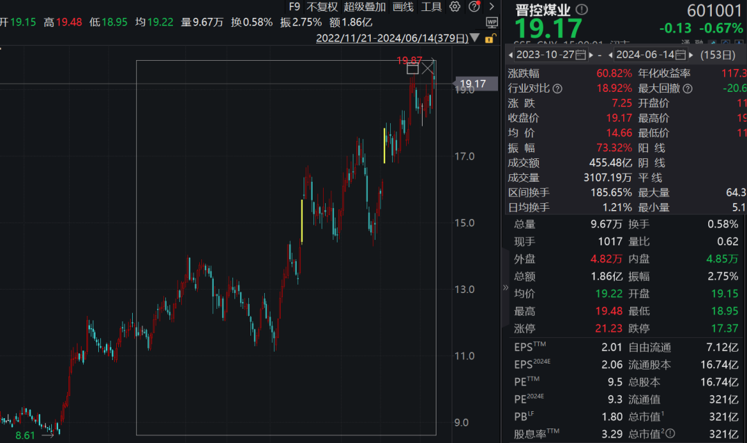 近年来,晋控煤业经营稳健:2023年,该公司实现营业收入153.4亿元,同比下滑4.6%;实现净利润33.01亿元,同比增长8.27%。2024年第一季度,晋控煤业营业收入36.58亿元,同比下滑1.53%,净利润7.8亿元,同比增长9.77%。