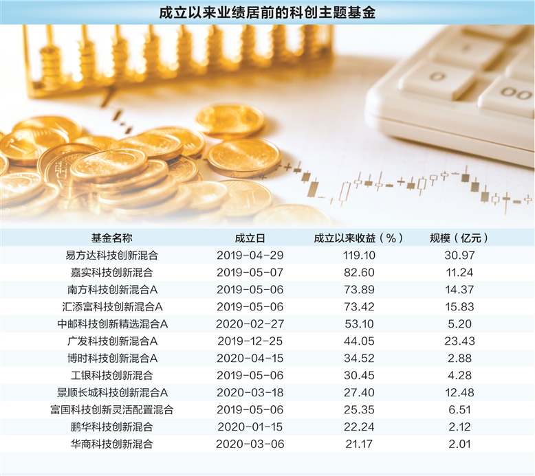在这过程中,首批成立的7只科创主题基金,跑出了亮眼成绩。7只基金普遍成立于2019年4月底或5月初,是科创板开板前就已推出的“种子基金”。截至2024年6月14日,7只基金成立以来均实现了两位数收益。其中,易方达科技创新累计收益超119%,是唯一一只收益翻番的科创主题基金。嘉实科技创新混合累计收益为82.6%,南方科技创新、汇添富科技创新的累计收益均超过70%。工银科技创新、富国科技创新和华夏科技创新,成立以来的收益率分别为30.45%、25.35%、16.53%。