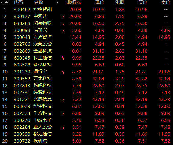 5G概念、6G概念、卫星导航、光通信等板块也跟随走强,科瑞思、宏和科技、国华网安等批量涨停。