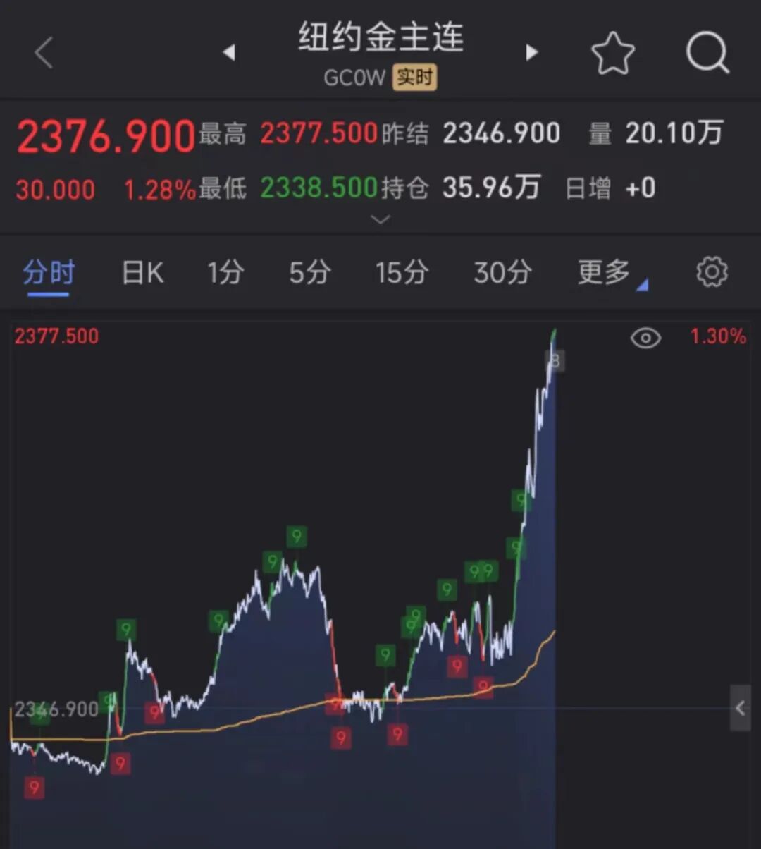 截至发稿,COMEX黄金持续走高,站上2370美元/盎司,创6月7日以来新高,日内涨1.28%。COMEX白银大涨超4%,报31.115美元/盎司。