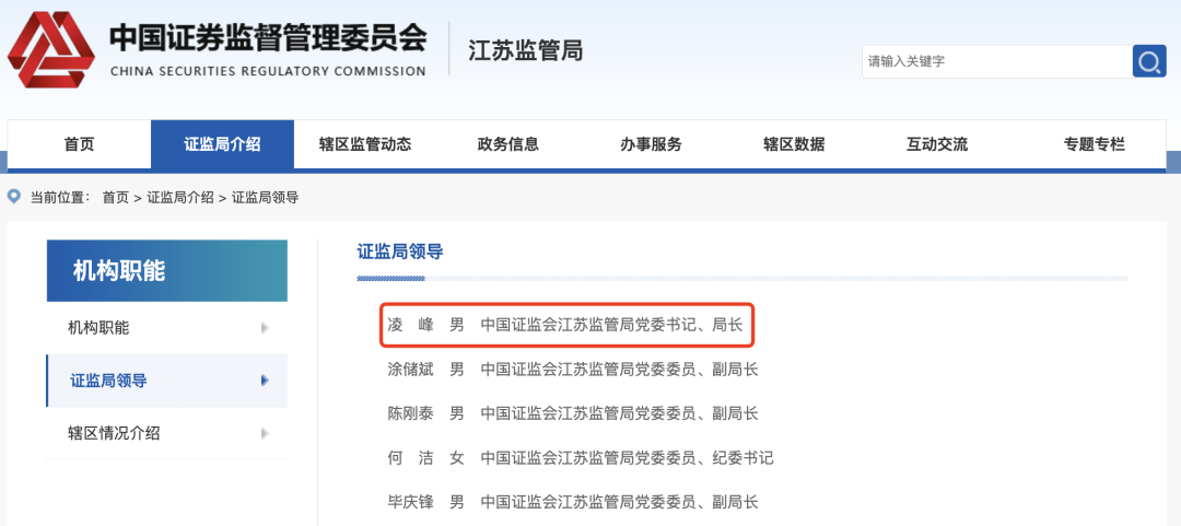 凌峰,现任中国证监会江苏证监局党委书记、局长,曾任贵州证监局党委书记、局长。