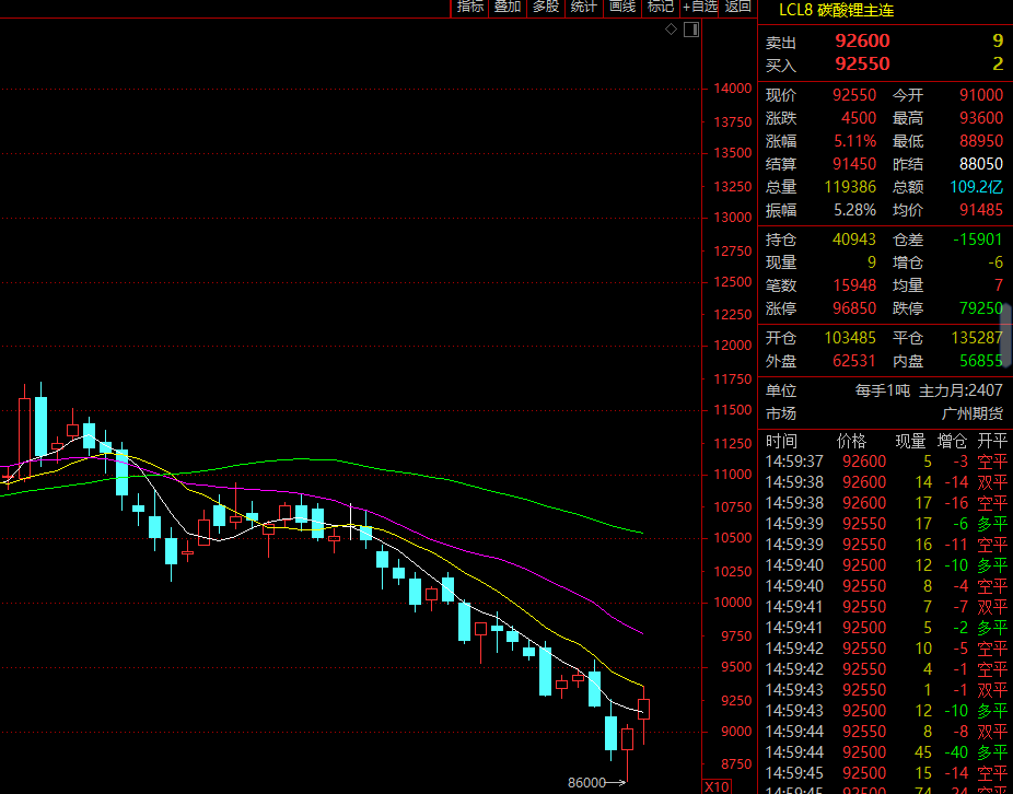 南华期货表示,在较大的供应压力之下,恰逢正极补库需求阶段性弱化,6月至7月中上旬碳酸锂期货价格预计承压。短期利空快速兑现,盘面空单利润空间收窄,江西锂盐端出现减产信号,提示反弹风险。
