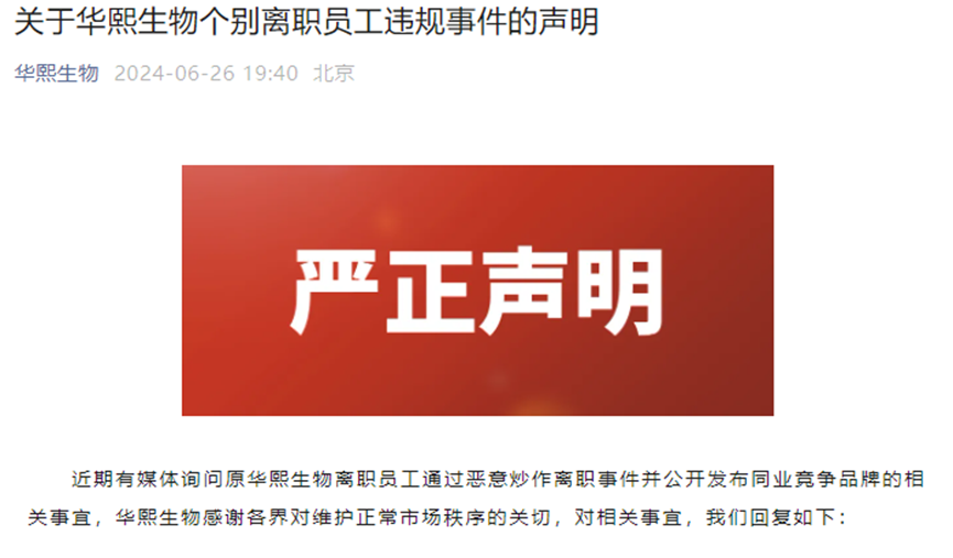 6月26日晚,华熙生物发布声明,对此事进行了回应。