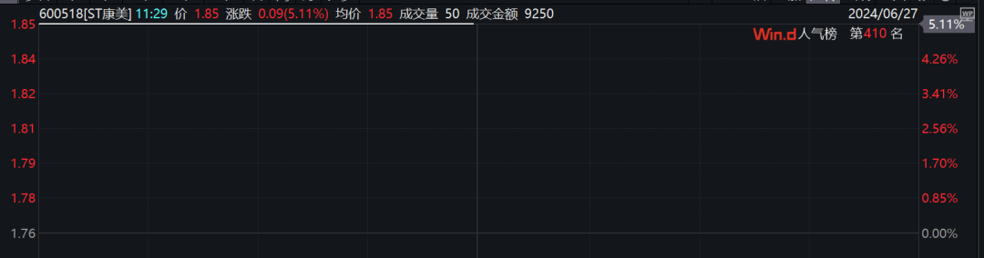如ST康美今日公告,截至公告披露日,公司因2020年度内部控制被出具否定意见的审计报告而触及的“其他风险警示”相应情形已经消除,渤海信托案件已经判决生效并进入执行程序,公司依法采取措施维护公司合法权益,公司盈利能力持续增强。公司将按照相关规定向上海证券交易所提出撤销“其他风险警示”的申请。最终申请撤销情况以上海证券交易所审核意见为准。受此消息刺激,ST康美早间开盘一字涨停。