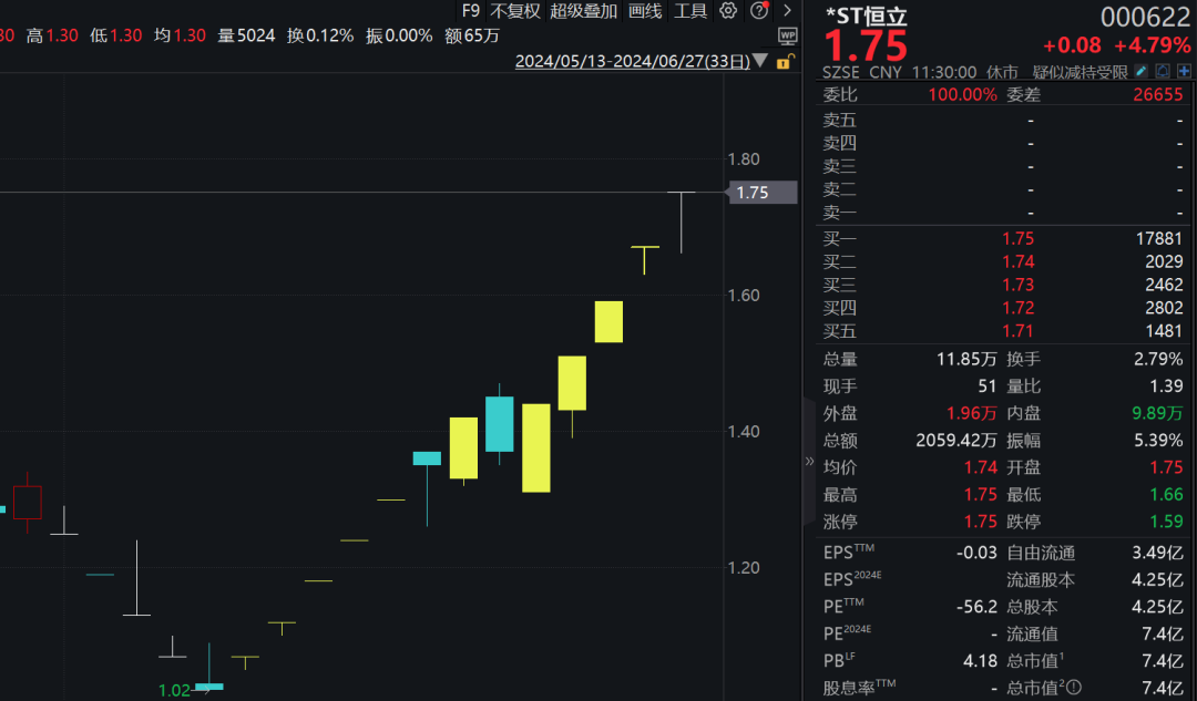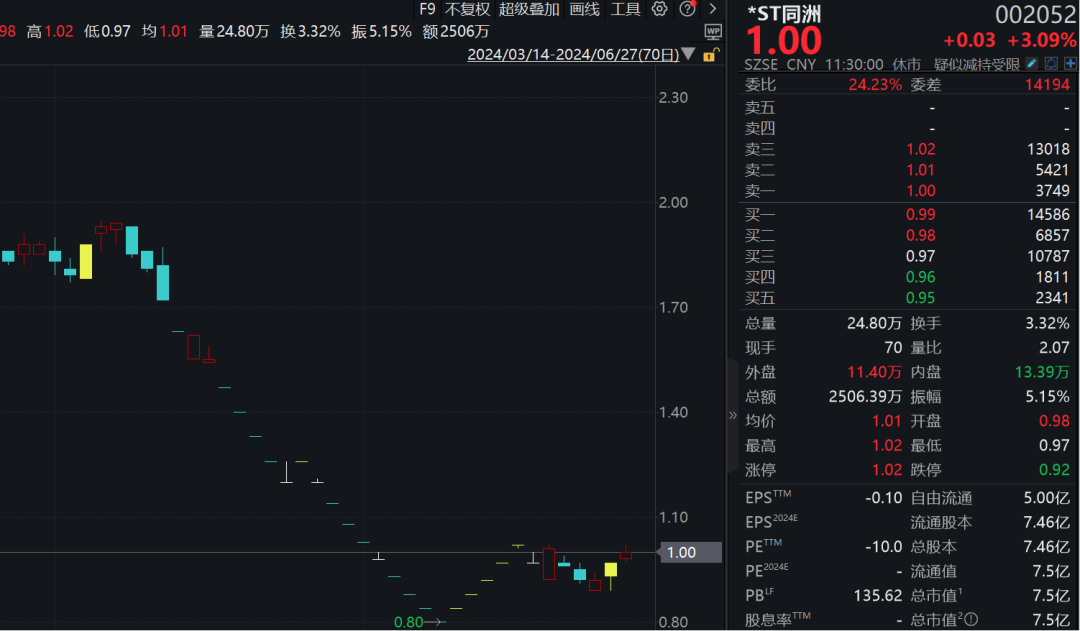 早间,*ST同洲一度涨停,股价一度回到1元以上。