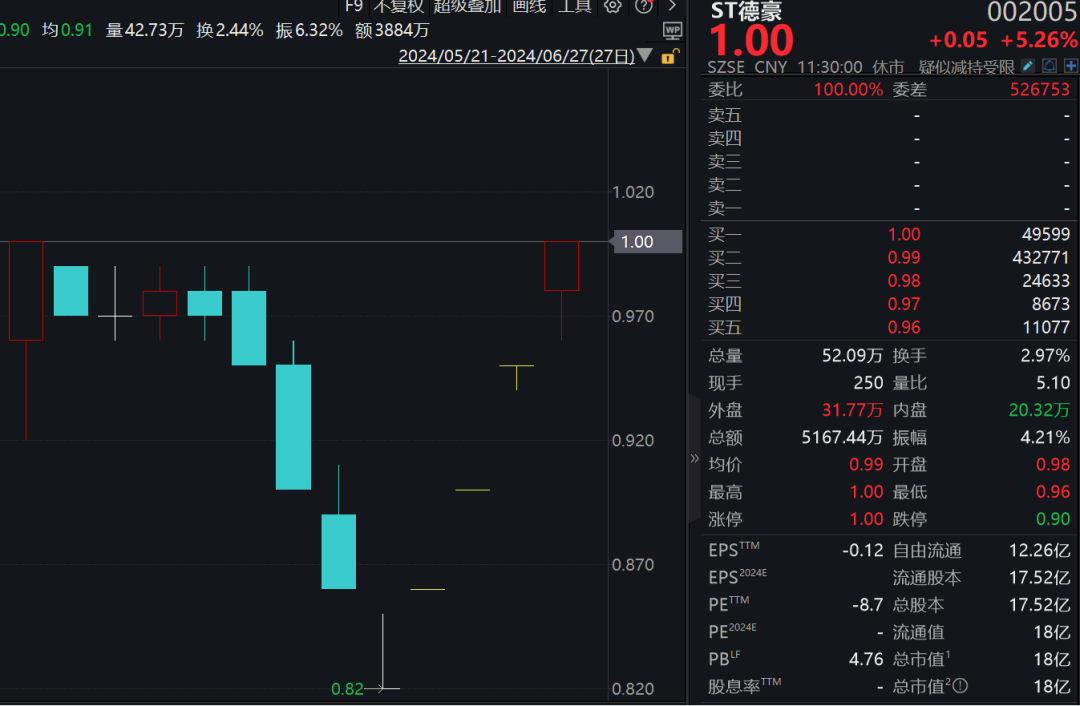 其中,*ST恒立连续5日涨停,近13个交易日收获11个涨停板;ST德豪亦连续4日涨停,ST易购也连续2日涨停。