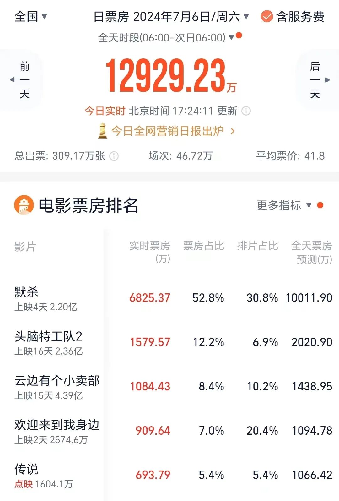 灯塔专业版显示,截至7月6日17时24分,该片单日票房超过6800万元,上映4日以来,累计票房超过2.2亿元。根据预测,该片票房有望超过11亿元。