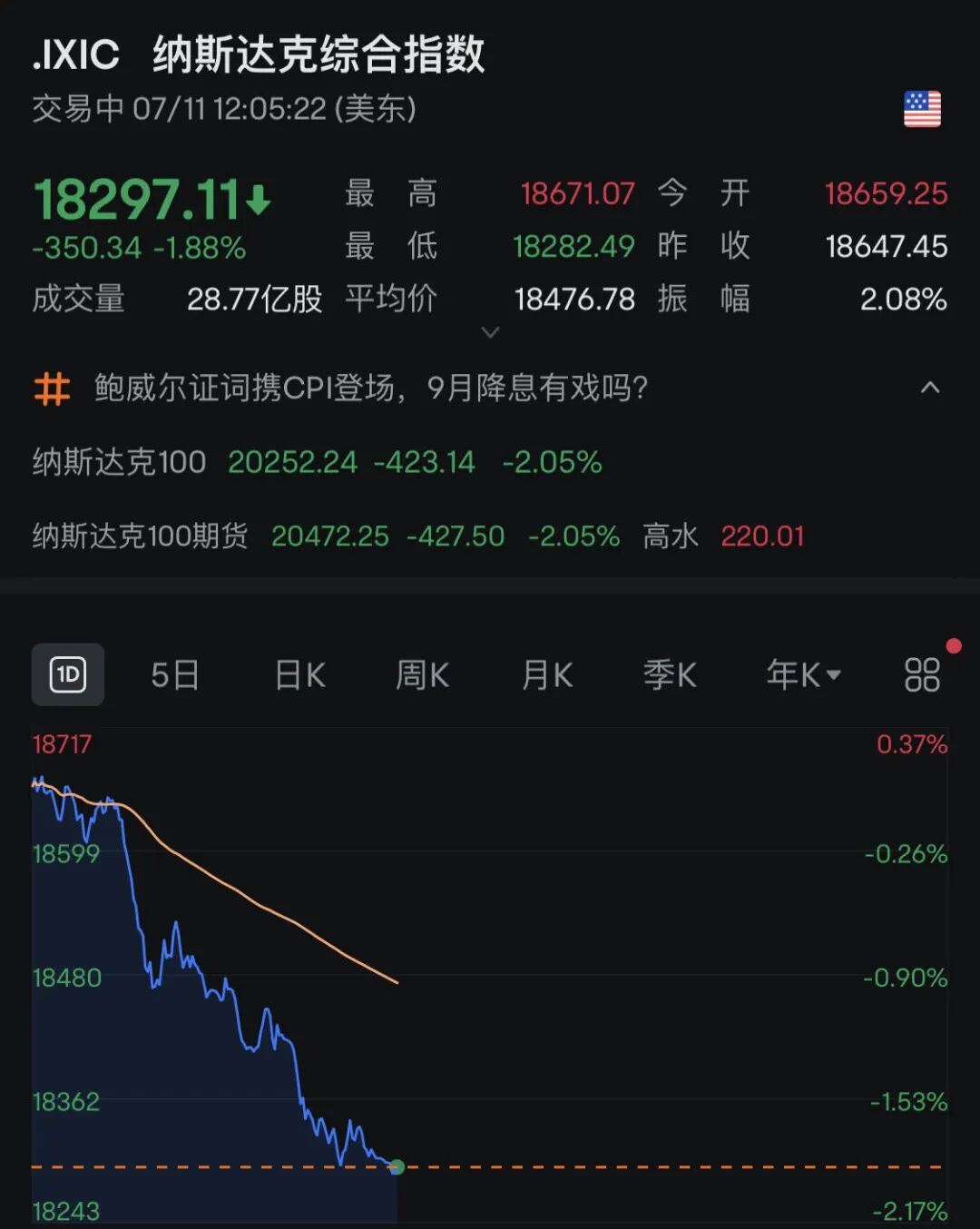 随着美国CPI最新数据出炉,深夜,纳斯达克指数突然暴跌。