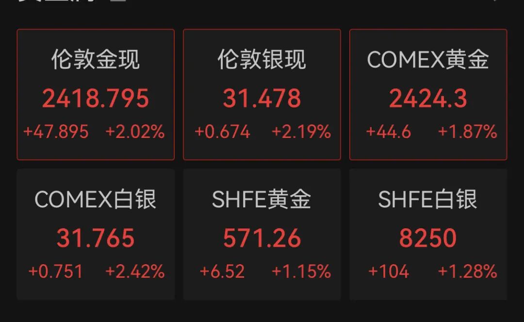 黄金、白银也表现强势。