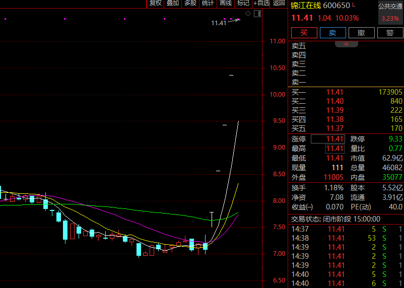 7月15日,锦江在线、大众交通、星网宇达、天迈科技等多只概念股发布股票交易异动公告,并提示风险。其中,锦江在线、星网宇达已在一波行情中斩获五连板。