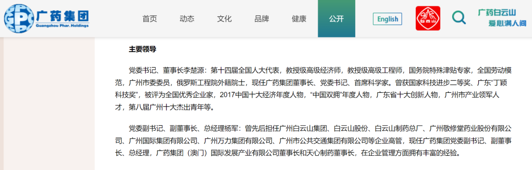 在广药集团官网的“主要领导”介绍中,李楚源仍为广药集团党委书记、董事长,杨军为广药集团党委副书记、副董事长、总经理,而杨军也正是此次暂代白云山董事长职务的人选。