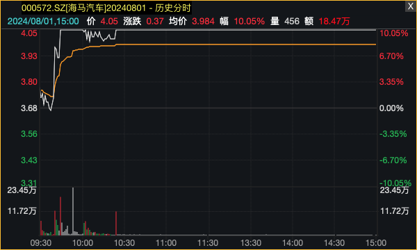 截至收盘,海马汽车、江西长运、深康佳A、浙江世宝、星网宇达、康盛股份涨停。电声股份盘中一度20cm涨停,现涨11.4%,永安行、南京公用等跟涨。