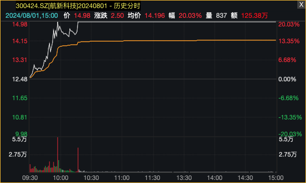 商业航天近期持续放量上扬,今日再度上涨1.7%,连续第7日收阳,创近2个月来新高。航新科技、春晖智控20%涨停,腾达科技连续9日涨停,航天晨光连续5日涨停,宗申动力、大业股份等逾10股涨停或涨超10%。