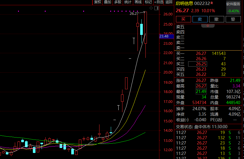 盘面上,医药、猪肉、国防军工、预制菜等板块涨幅居前,公共交通、通信设备、有色、石油等板块跌幅居前。启明信息上演“地天板”,9个交易日6度涨停。
