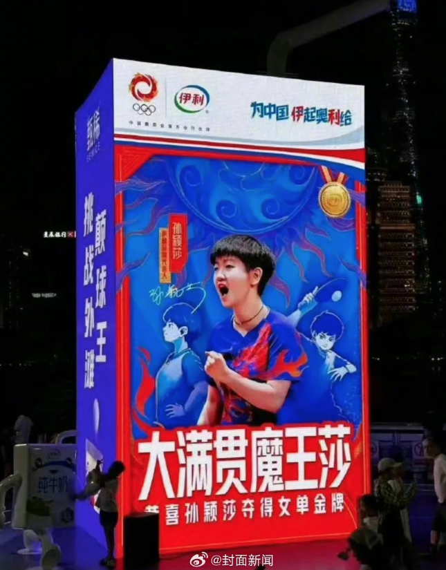 此前,有网友在社交平台表示,在巴黎奥运会郑钦文、樊振东以及孙颖莎所参加的三项决赛举行前,伊利已在大屏幕投放了祝贺郑钦文“网球女子单打项目摘银”“大满贯樊振东”“孙颖莎夺得女单金牌”的物料内容。