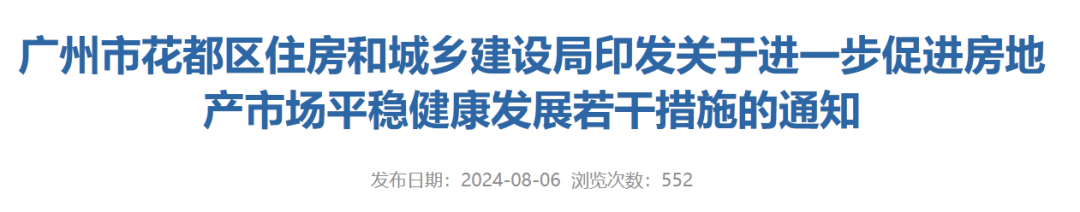 8月6日,广州市花都区住建局发布《关于进一步促进房地产市场平稳健康发展若干措施的通知》。