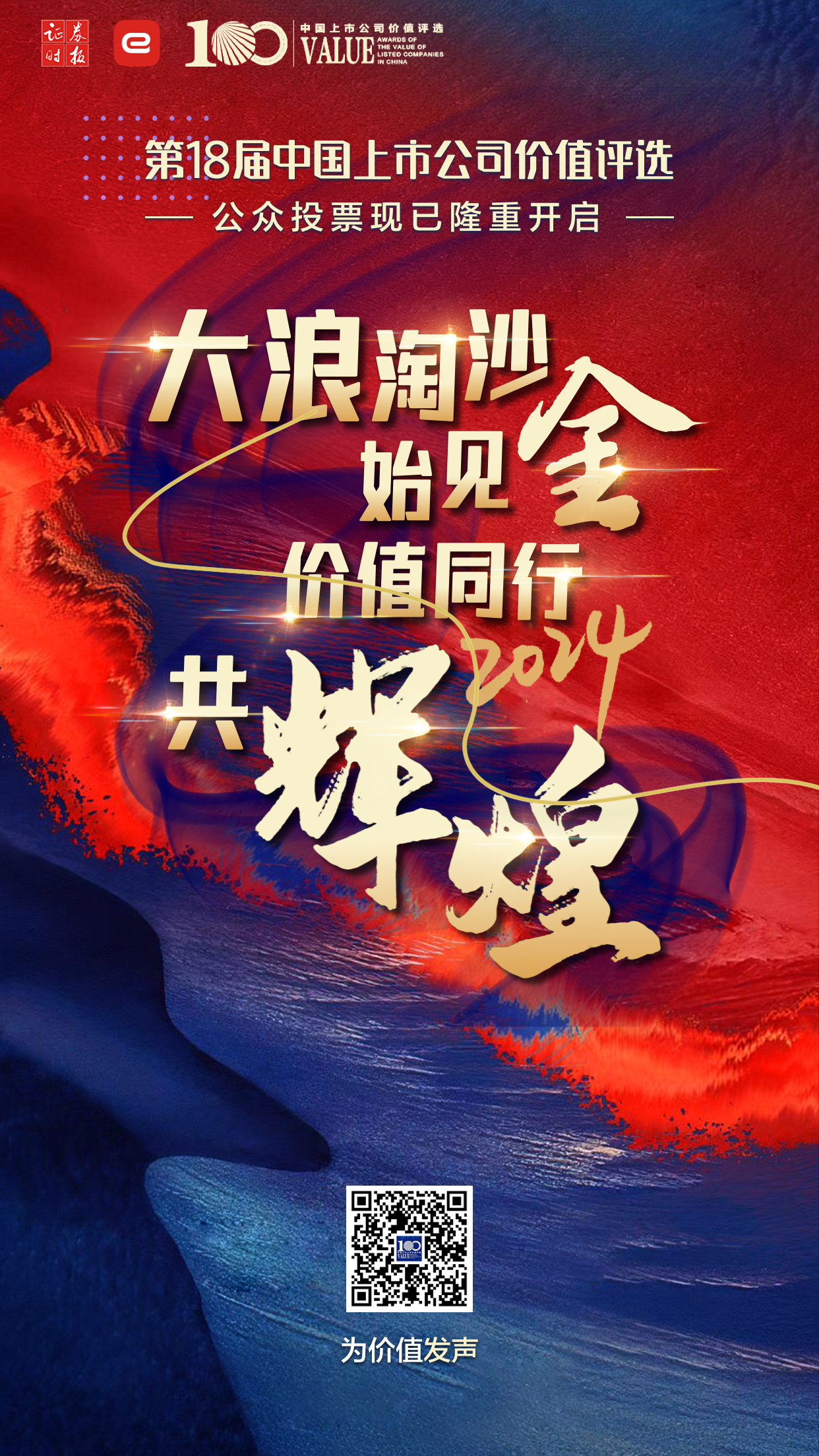 证券时报e公司讯,由证券时报主办的第18届中国上市公司价值评选活动公众投票正式开启,投票起止时间为2024年8月8日至8月18日,您的每一票都至关重要。大浪淘沙始见金,价值同行共辉煌!欢迎关注“e公司”微信公众号,为您心中优秀的上市公司和上市公司高管投票。