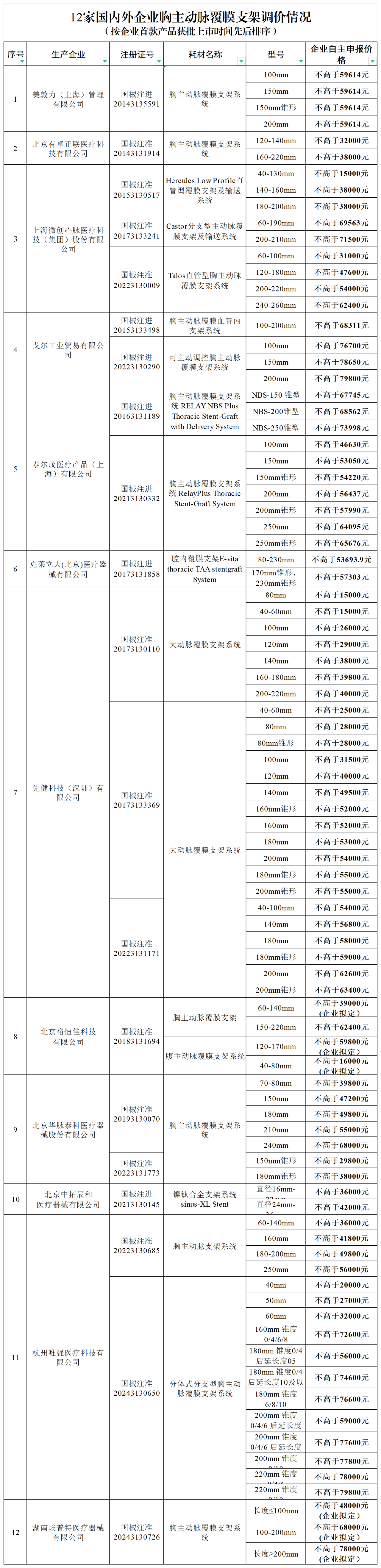 证券时报网讯,据国家医保局消息,近期,社会广泛关注胸主动脉覆膜支架调价情况,现将企业自主申报的最新终端挂网价格情况整体公开。
