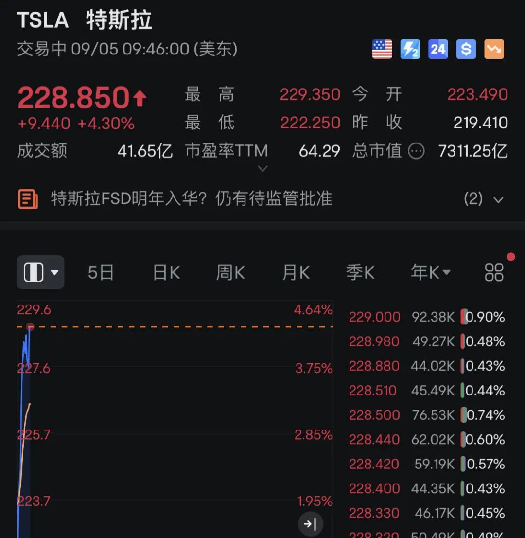 个股方面,特斯拉涨幅扩大,9月5日,特斯拉人工智能团队在社交平台发布消息称,预计2025年第一季度在中国和欧洲推出全自动驾驶(FSD)系统,但仍有待监管批准。