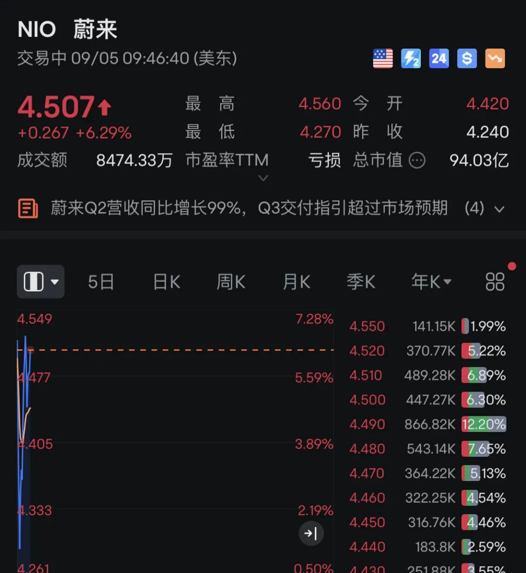 蔚来同时给出单季交付和营收指引:三季度交付指引为6.1万辆至6.3万辆;三季度营收指引为191.1亿元至196.7亿元,两项指引均创历史新高。