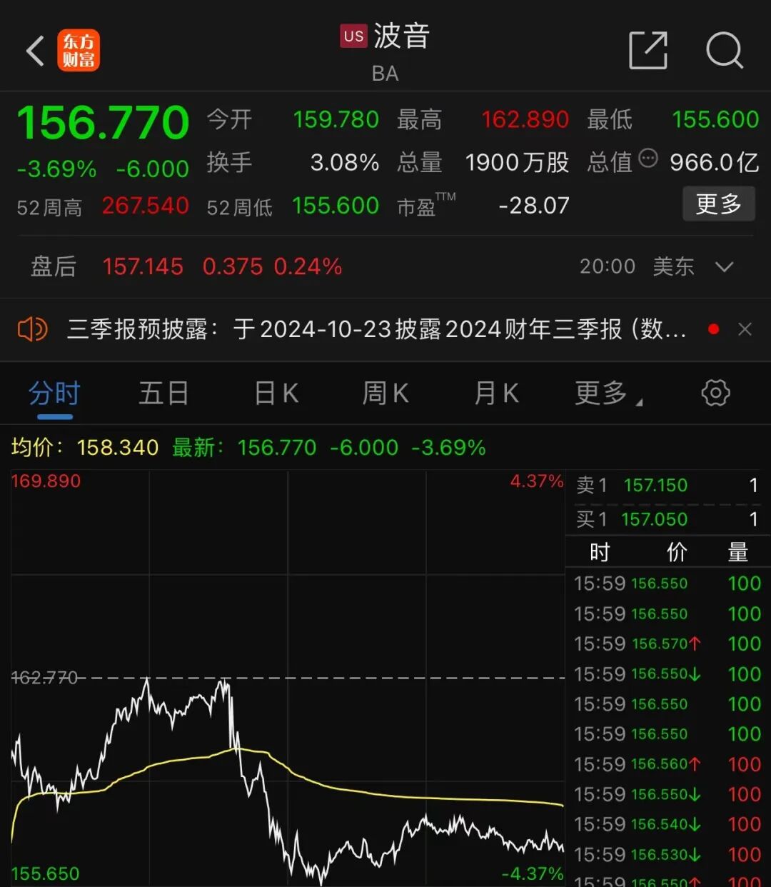 9月15日,穆迪将波音的评级列入负面观察。穆迪表示,如果IAM(国际机械师与航空太空工会)罢工持续,导致波音的流动性大幅降低,那么评级可能会被下调。