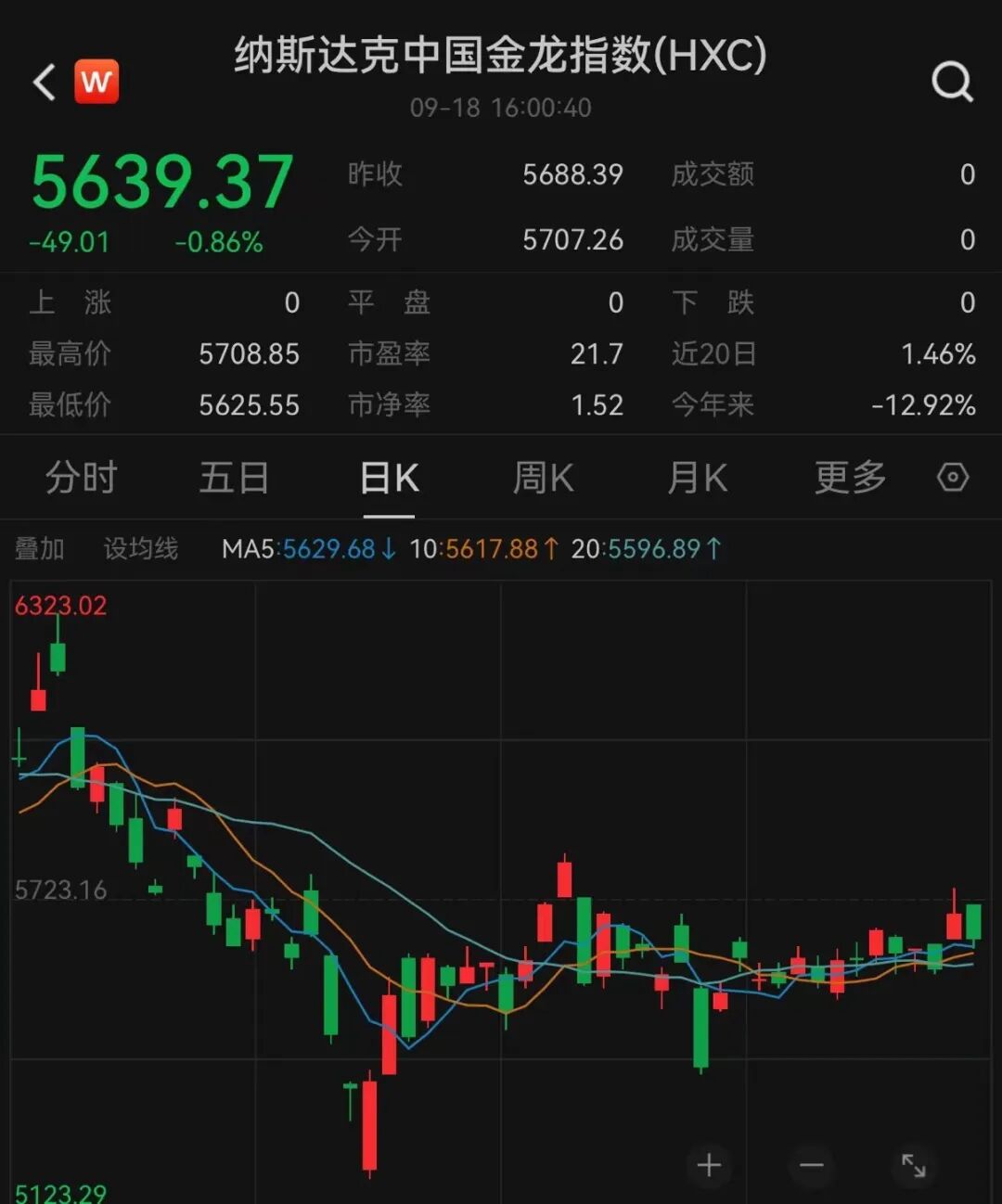热门中概股多数下跌,纳斯达克中国金龙指数跌0.86%。