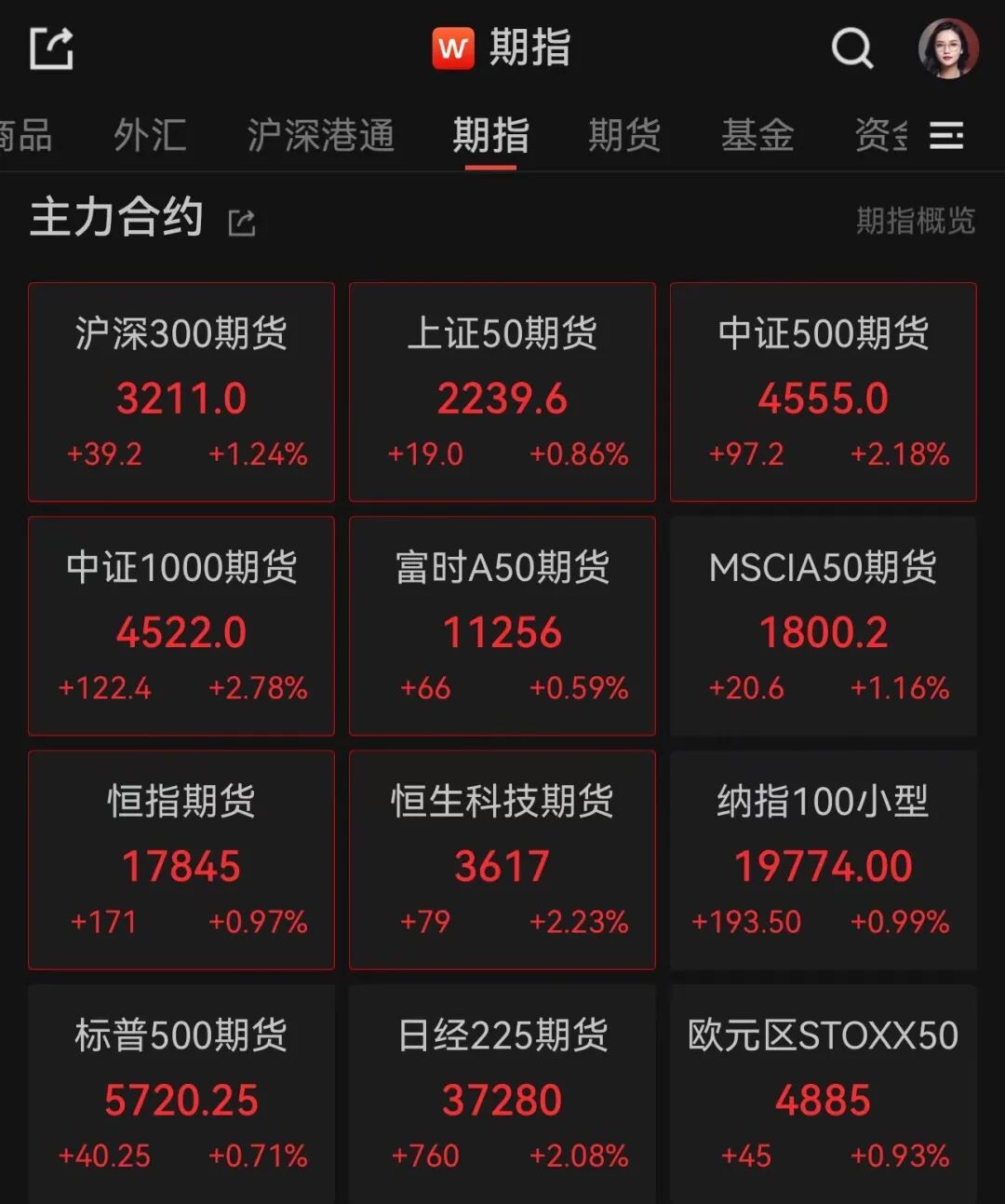 全球主要股指期货指数上涨。富时A50期货指数直线拉升。美股在昨天尾盘集体跳水后,今天股指期货也悉数上涨。
