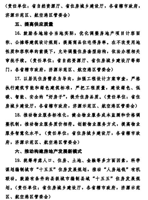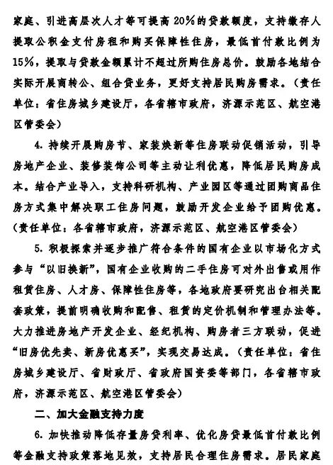 《措施》共计20条,涉及取消商品住房限制政策;加大购房补贴力度;加快“白名单”问题项目整改修复;严格控制新增住房供应节奏等政策细则。