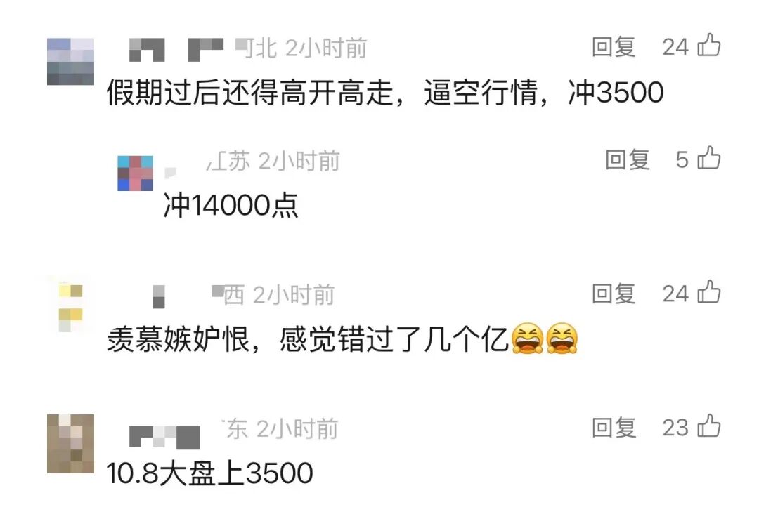 也有股民认为,假期后A股还得高开高走,多人预测上证指数将“直冲3500点”。