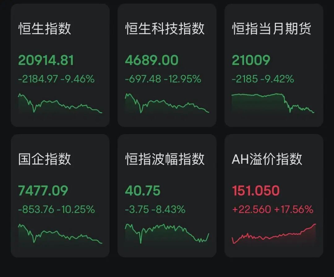 港股市场则大幅回调,恒生指数盘中一度大跌超10%,恒生科技指数最多跌逾14%。