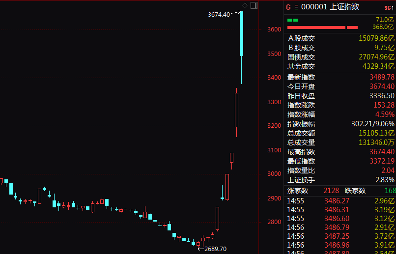 今日,A股整体大幅高开,盘中出现一波调整,随后再度强势上攻。创业板指以17.25%的涨幅报收,创历史最大单日涨幅;上证指数开盘一度涨10.13%,这是沪指历史首次涨幅超过10%。