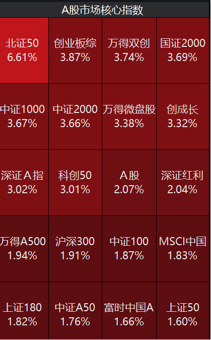 今日,A股整体高开高走,上证指数、深证成指等均涨超2%,科创50指数则由早盘跌逾2%,转为涨逾3%收盘。两市超4800股上涨,成交略放大至1.65万亿元。