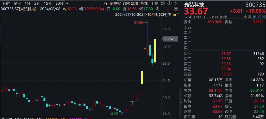 华为海思、华为算力、华为汽车等相关板块也大幅上攻,光弘科技、银宝山新、兴民智通、东方中科等批量涨停。