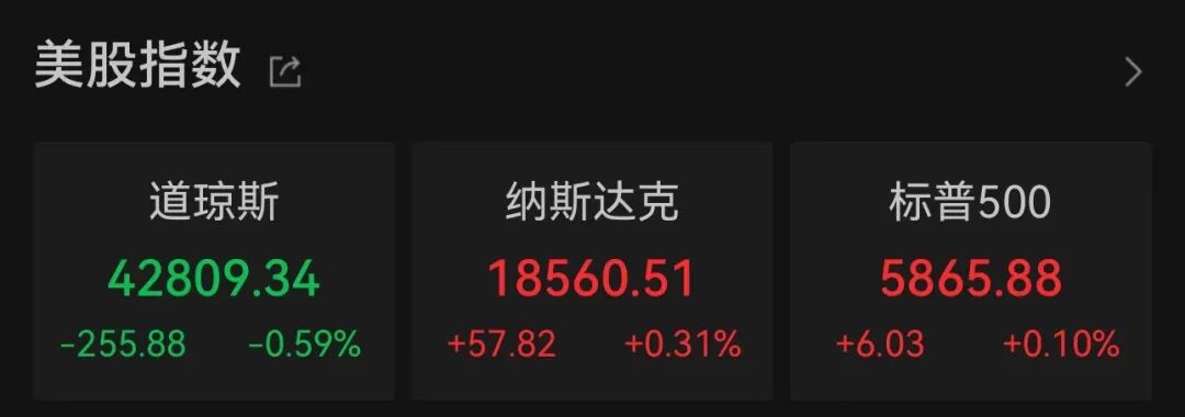 周二晚间,美股三大股指开盘涨跌不一,截至发稿,道指跌0.59%,纳指涨0.31%,标普500指数涨0.10%。
